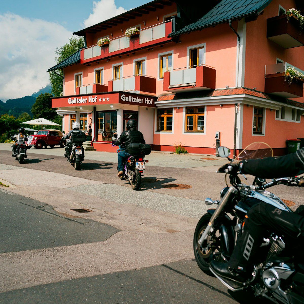 Hier findet der Motorradfahrer noch kleine Nebenstraßen, die nur von den Einheimischen genutzt werden und ihn auf schwindelerregende Höhen zu alten Gehöften bringen. Nebentäler zum Kurvenfahren vom Feinsten. Motorradurlaub im Gailtaler Hof bedeutet: